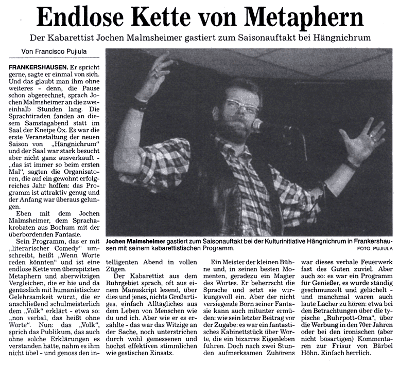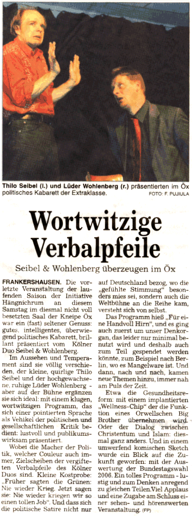 Presse HNA Mo., 7. Oktober 2002 (205kB) Presse WR Mo., 7. Oktober 2002 (153kB) |