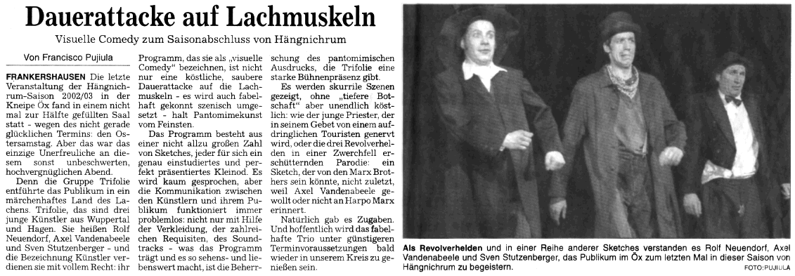 Trifolie Presse HNA Mi., 23. April 2003 (133kB) Presse WR Di., 22. April 2003 (132kB) |